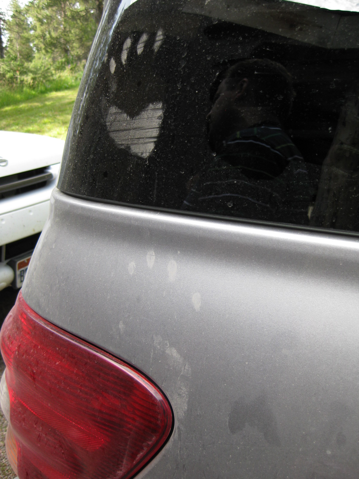 We were warned of a furry friend wondering the neighborhood we stayed in. We found these two prints on one of our cars the last day we were there that have yet to be explained...